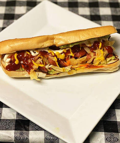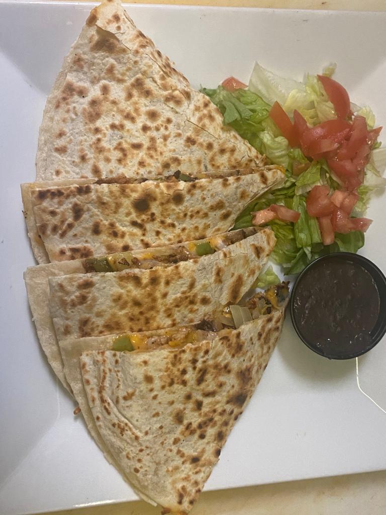 Tortilla de maíz frita, lechuga, tomate, cebolla, mayonesa, guacamole, chipotle con su elección de carne adobada